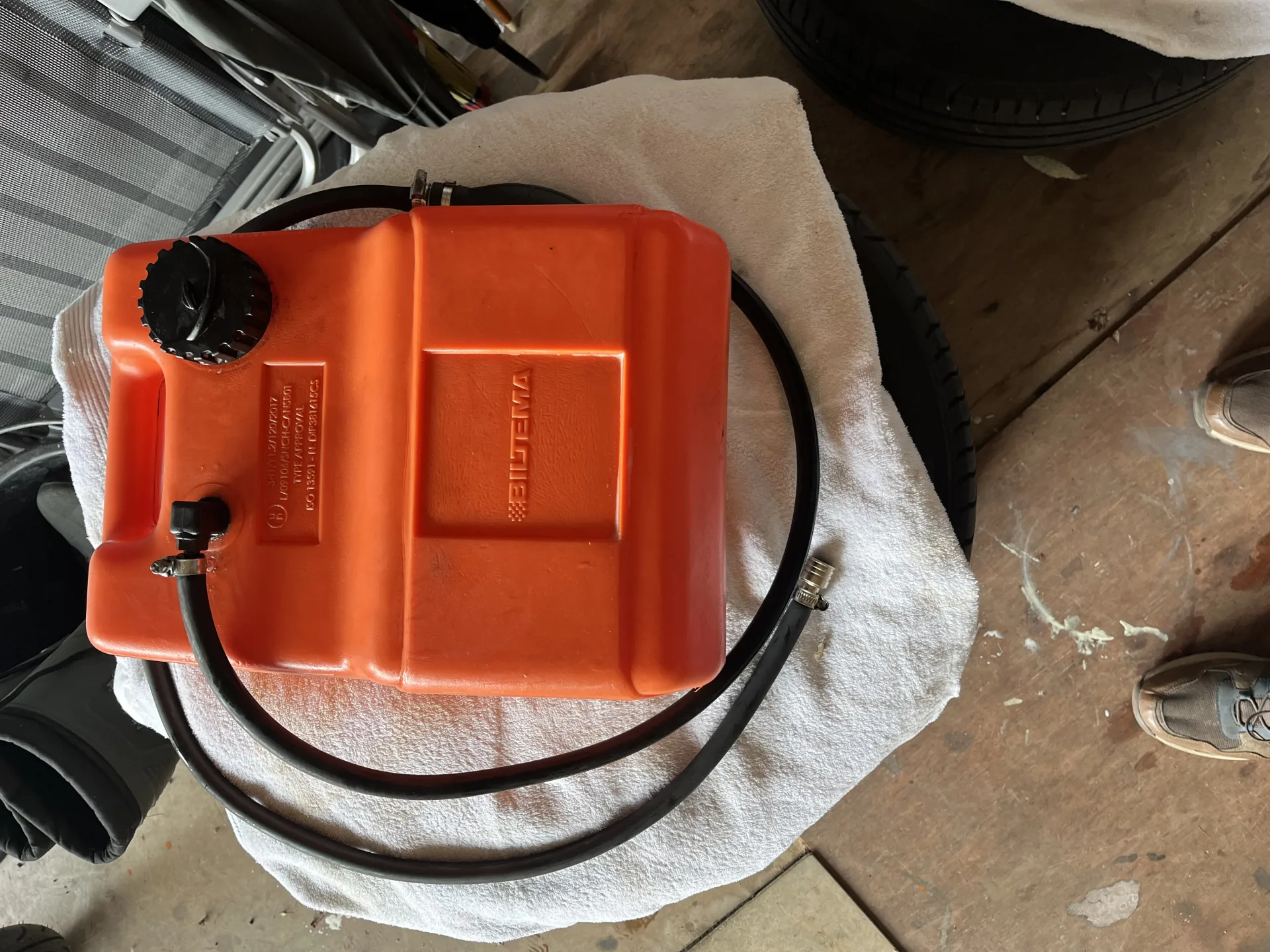 12liters tank med ny slang,pump och rostfria klämmor. Slang av högsta kvalité vittrar ej och blir ej stel.