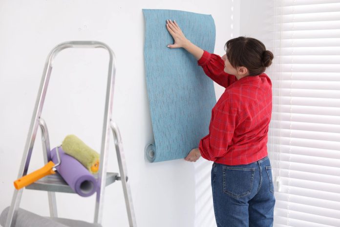 Papperstapet: Rolla/pensla lim på baksidan av våden, vik ihop “bokvikning” (lim mot lim) och låt svälla enligt anvisning (ofta 5–10 min).