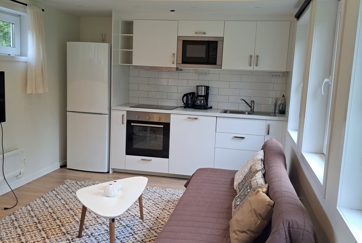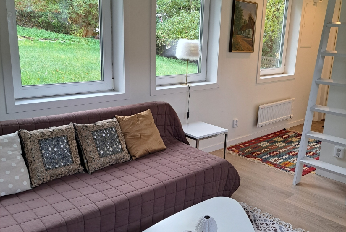 Mycket trevligt, ljust och modernt Attefallshus på 30kvm, med gratis parkeringsplats i ett lugnt och grönt villaområde bara 2 minuter promenad till busshållplatser med många bussar till Gullmarsplan.